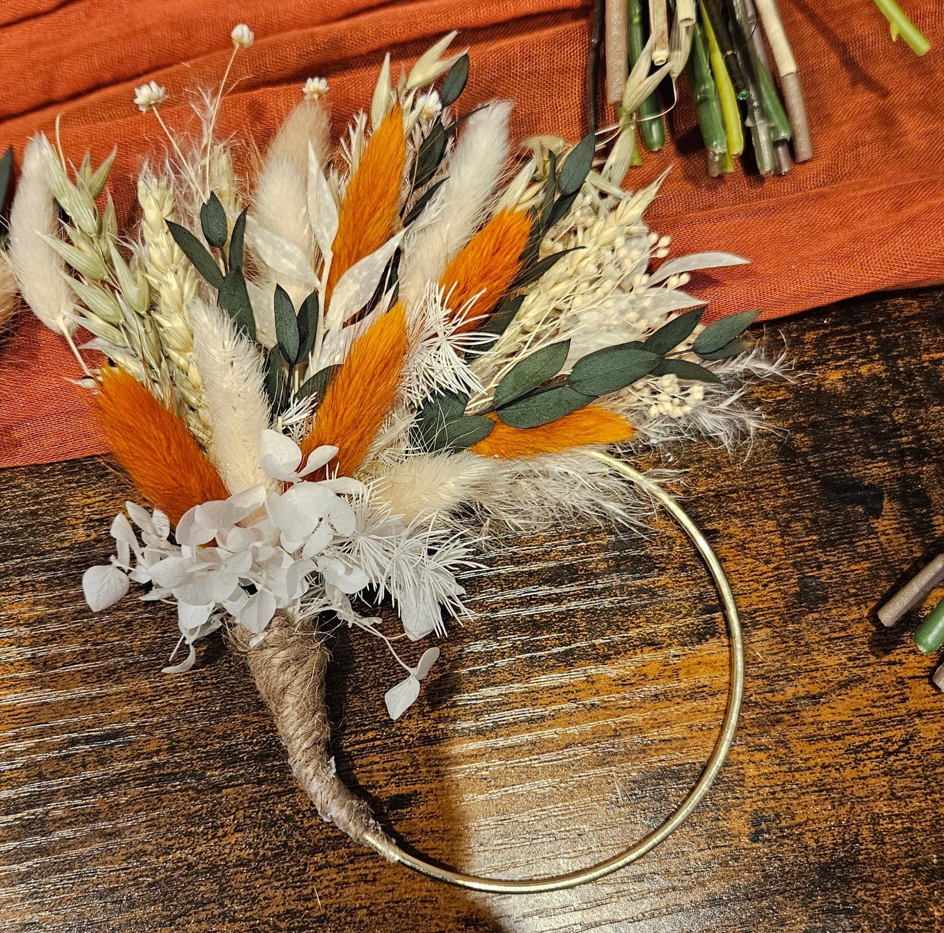 Elevate your event cake with our exquisite Pampas Grass and Dried Flower Gold Hoop Cake Topper, meticulously handcrafted to add a touch of luxury and uniqueness to your celebration. Made with the finest quality materials, designed to complement any occasion with its natural charm and elegance.