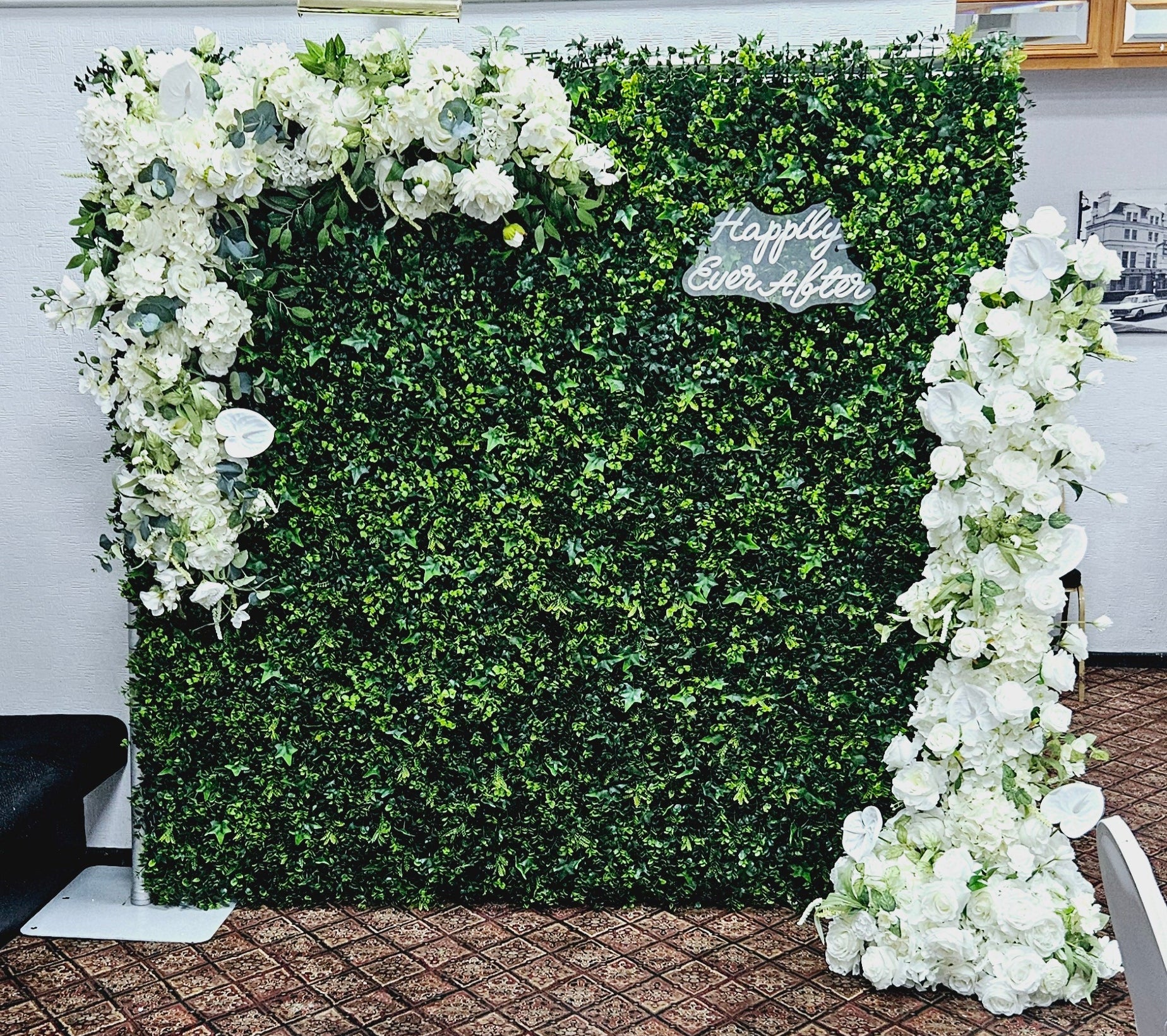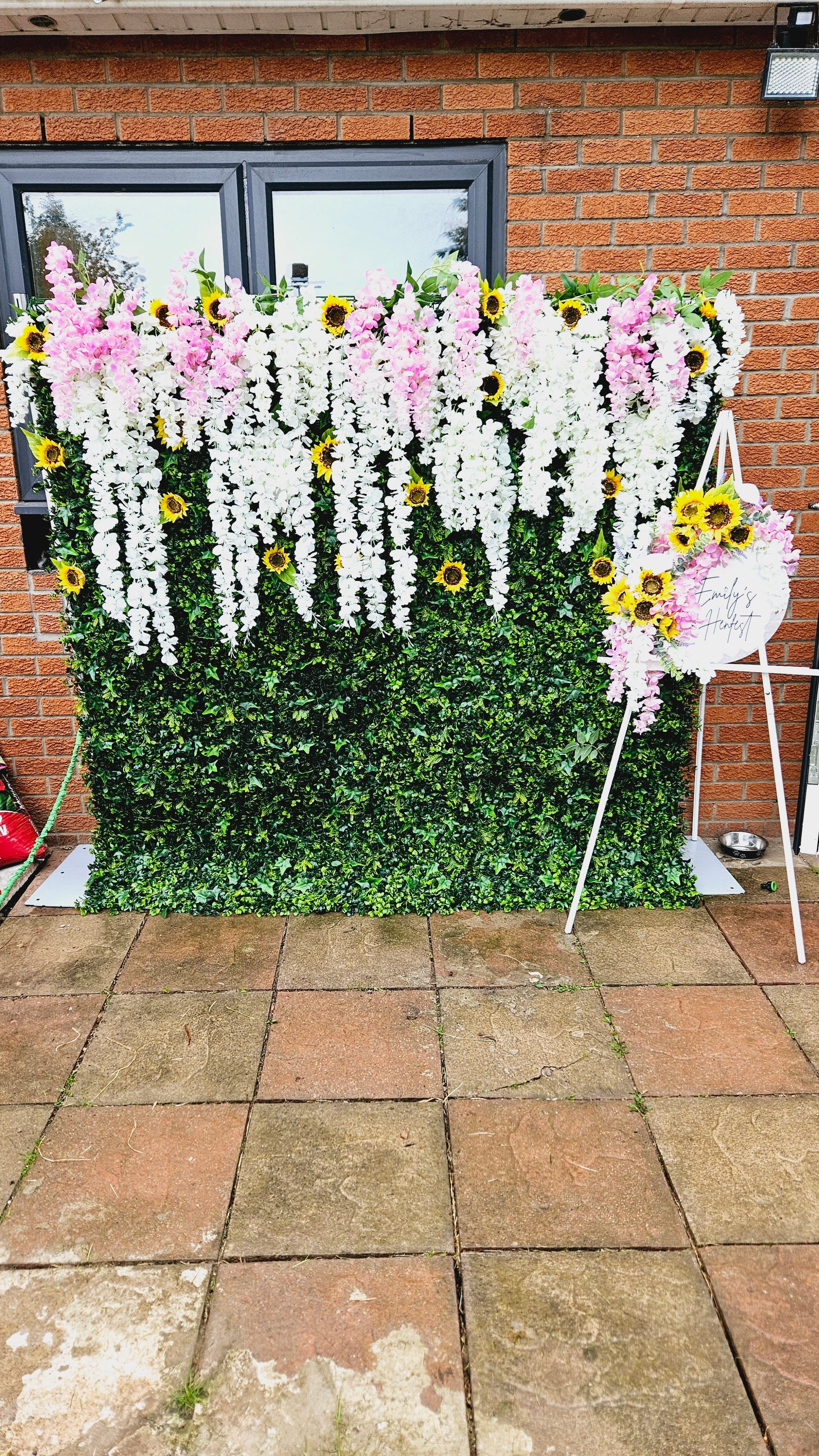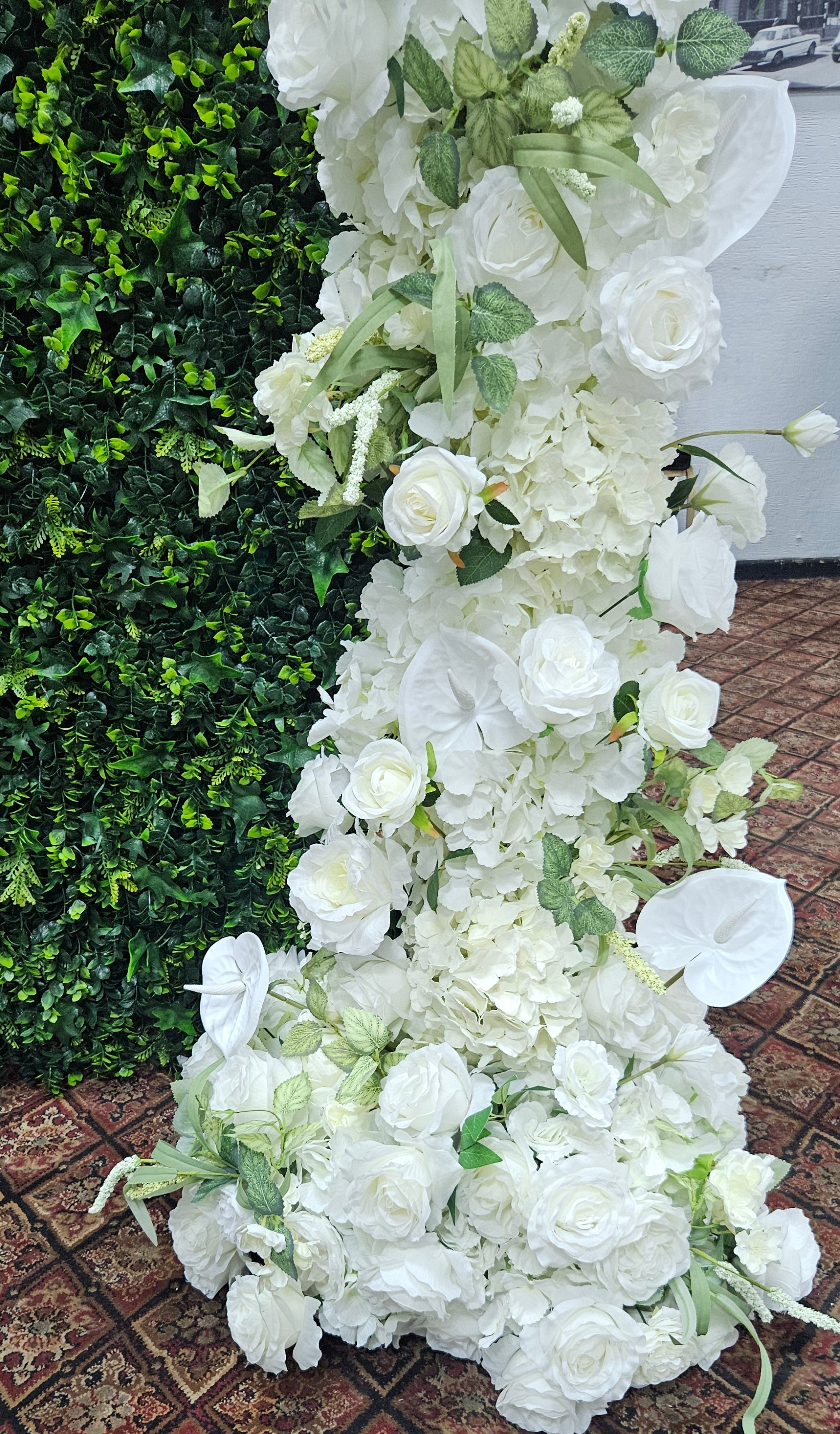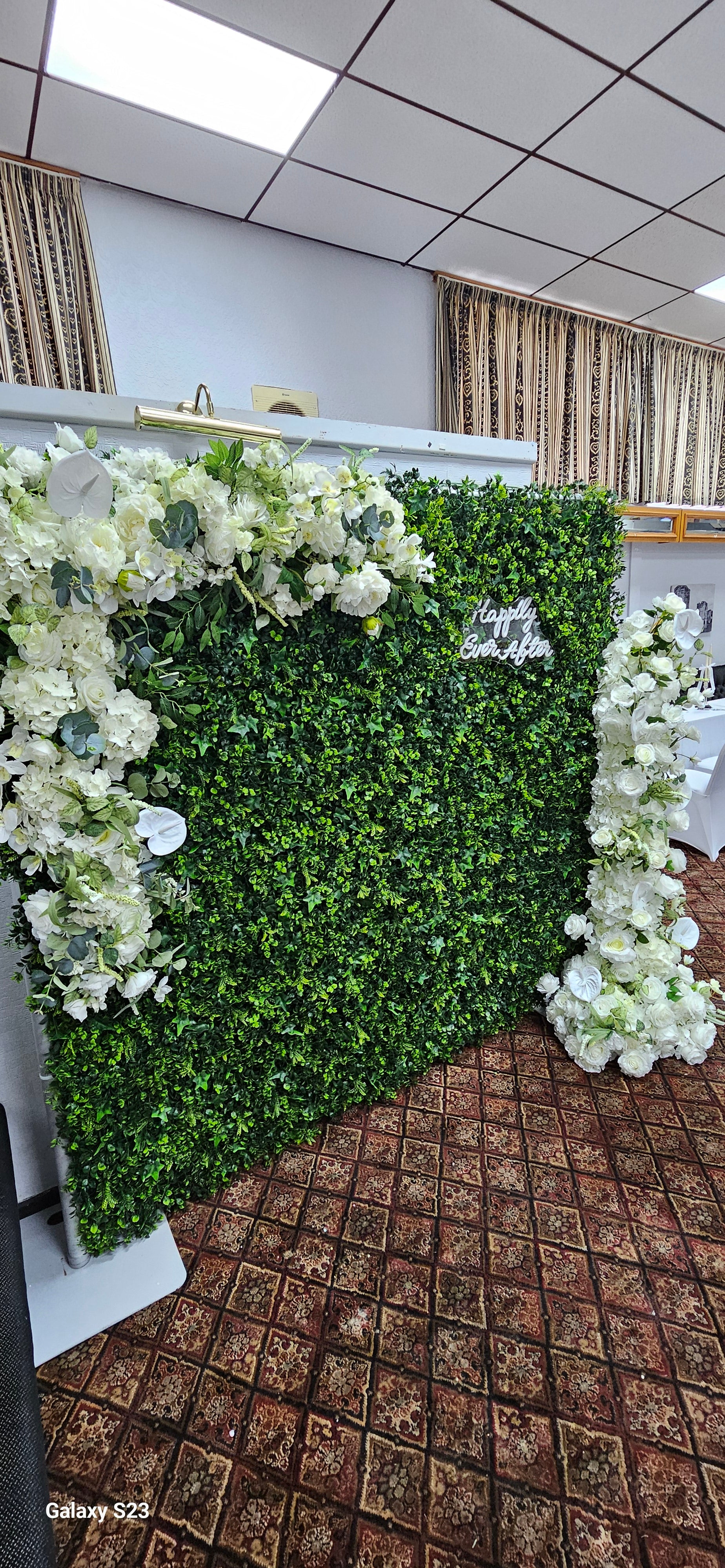 This flower wall is very luxurious and includes the highest quality flowers, along with being fully lined so no sunlight will shine through