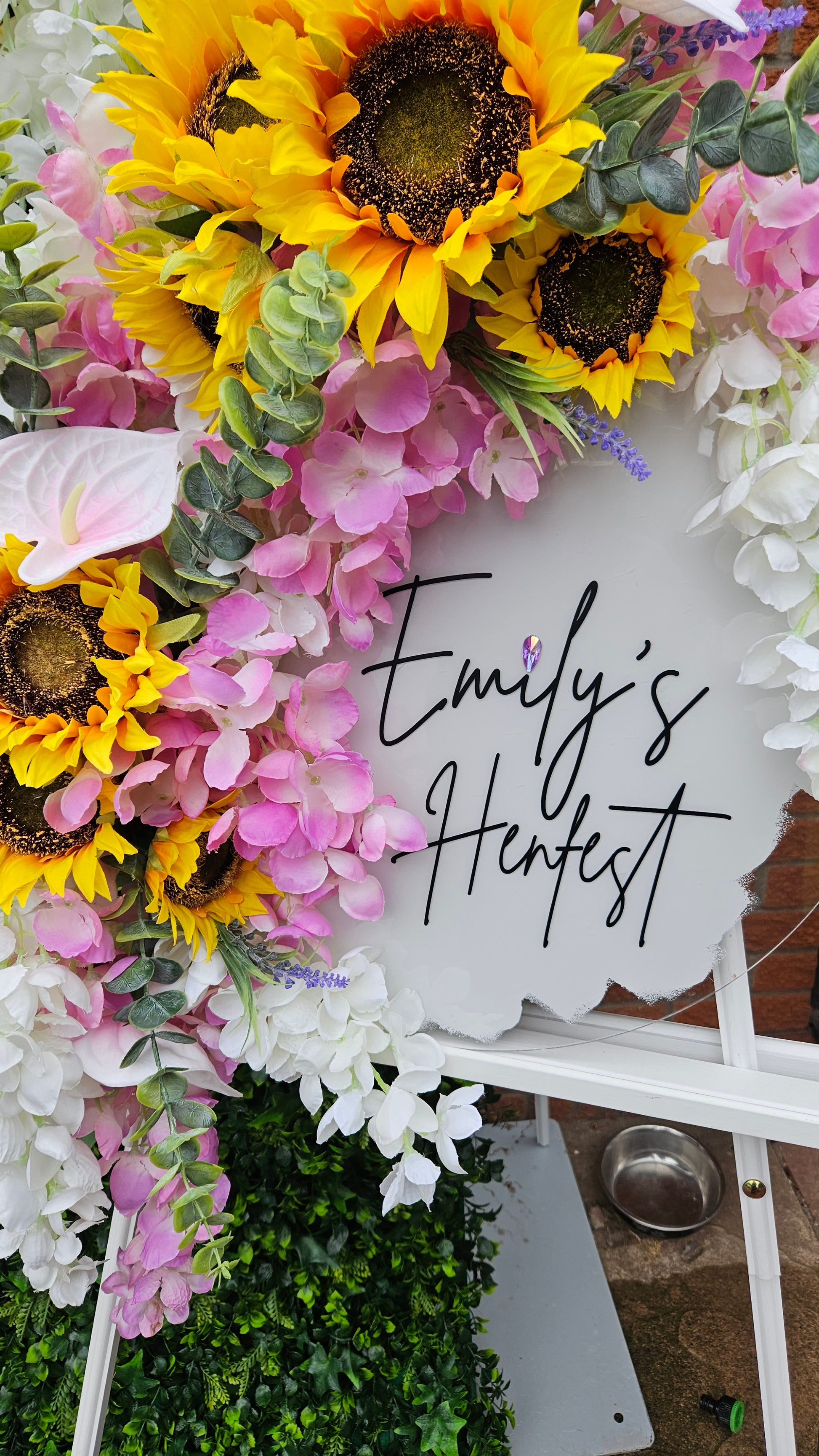 Our stunning fully lined Foliage Wall is handmade by us, meaning we're can add any colour and type of flower either along the top or corner of the wall