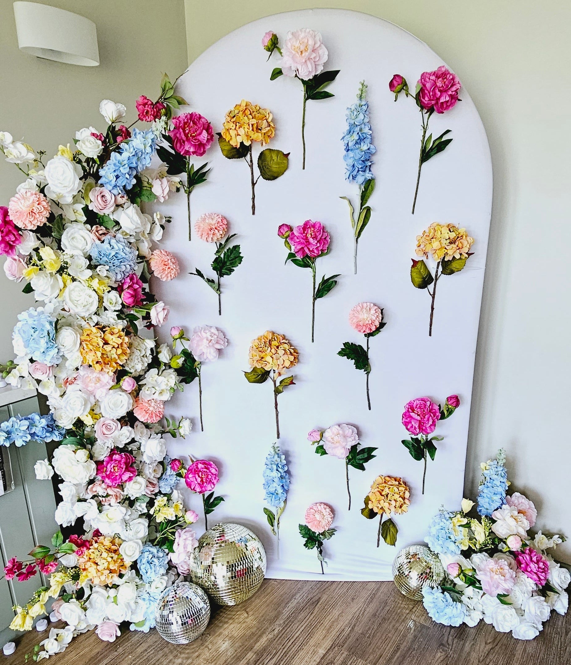 Using only the highest quality faux flowers & materials this backdrop will be one to make your guests talk