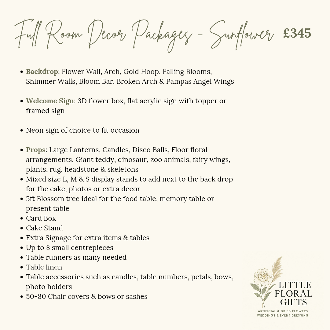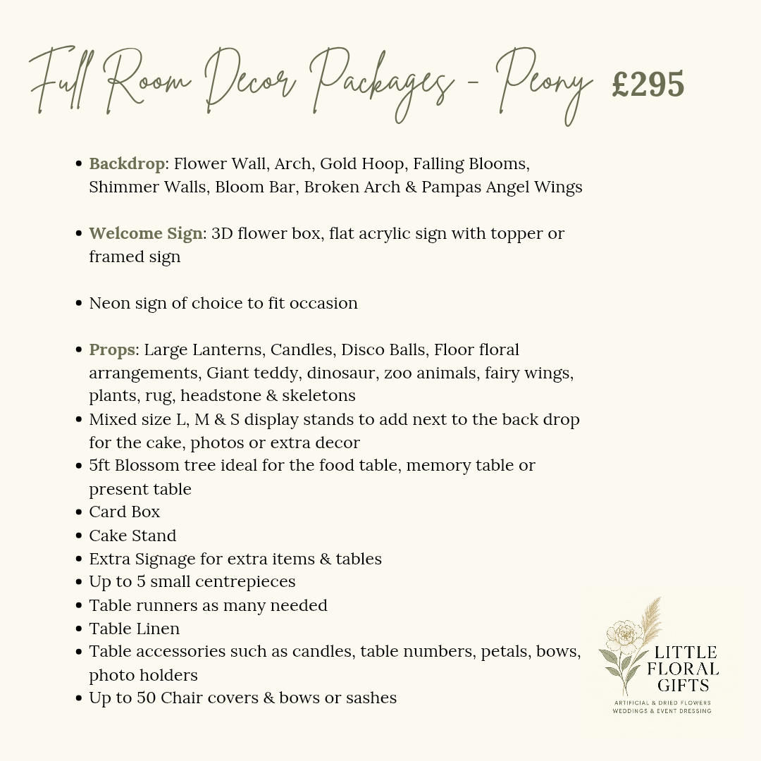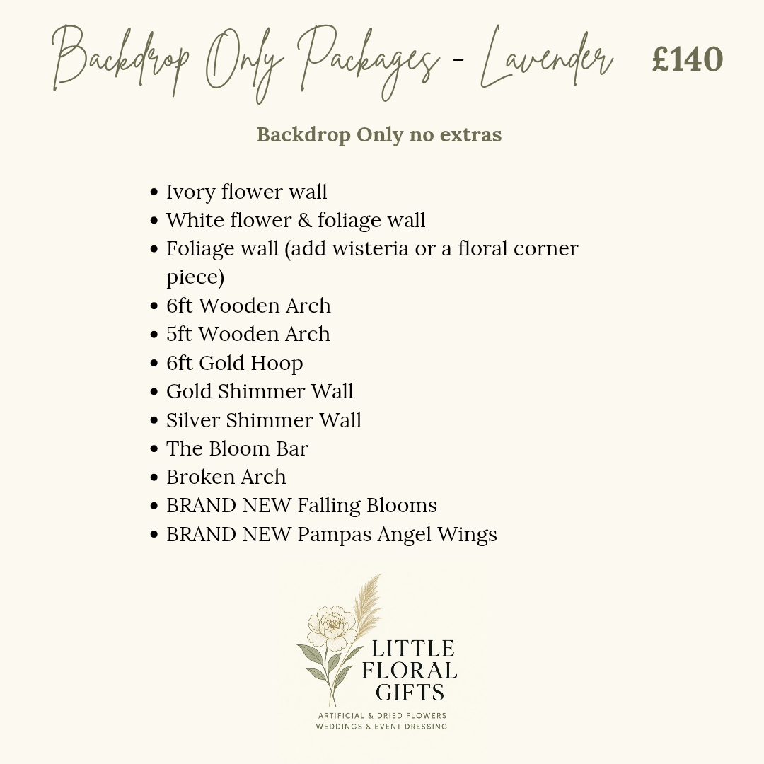 Choose from one of our packages, ranging from this backdrop only to a complete full room dressing along with it